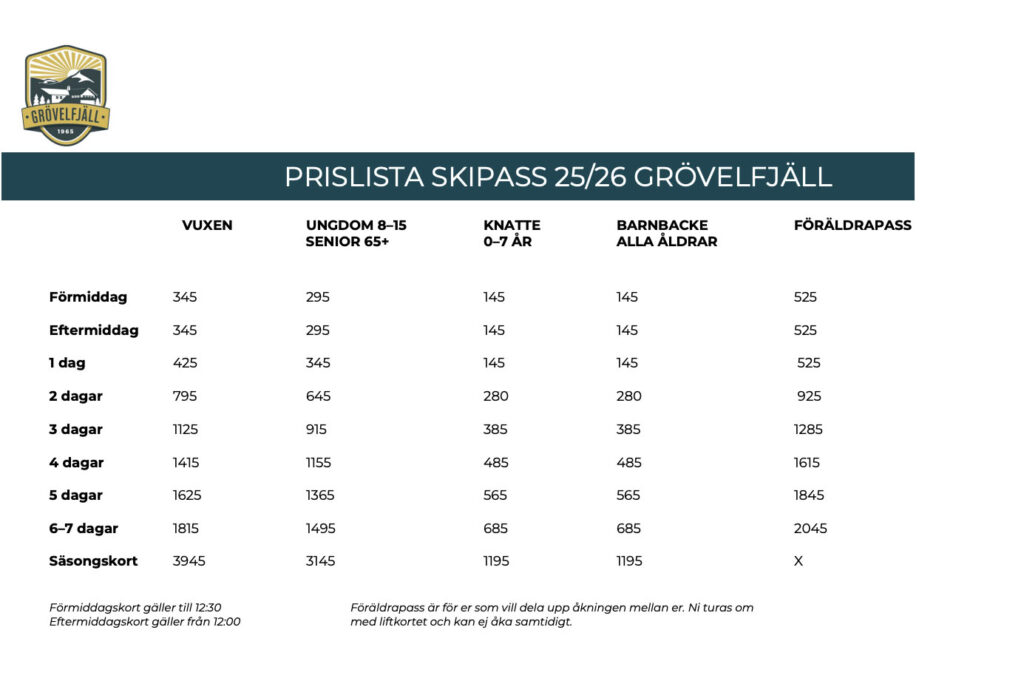 Alla som åker i skidbackarna ska bära ett giltigt skipass, även i barnbacken. Ett skipass är personligt, förutom föräldrapasset som kan delas mellan två vuxna.